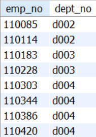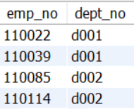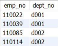 d001 부서가 아닌 사원번호와 부서번호