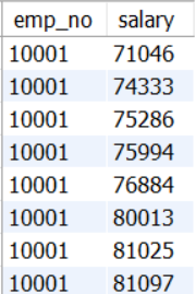 select emp_no, salary, from_date