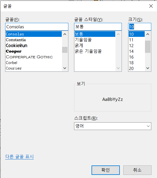 한글을 지원하지 않지만 기호간 변별력이 높고 개발에 적합한 폰트 기본적으로 많이 쓰이는 폰트라고 한다