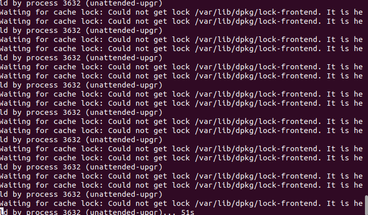 Waiting for cache lock: Could not get lock /var/lib/dpkg/lock-frontend.에러