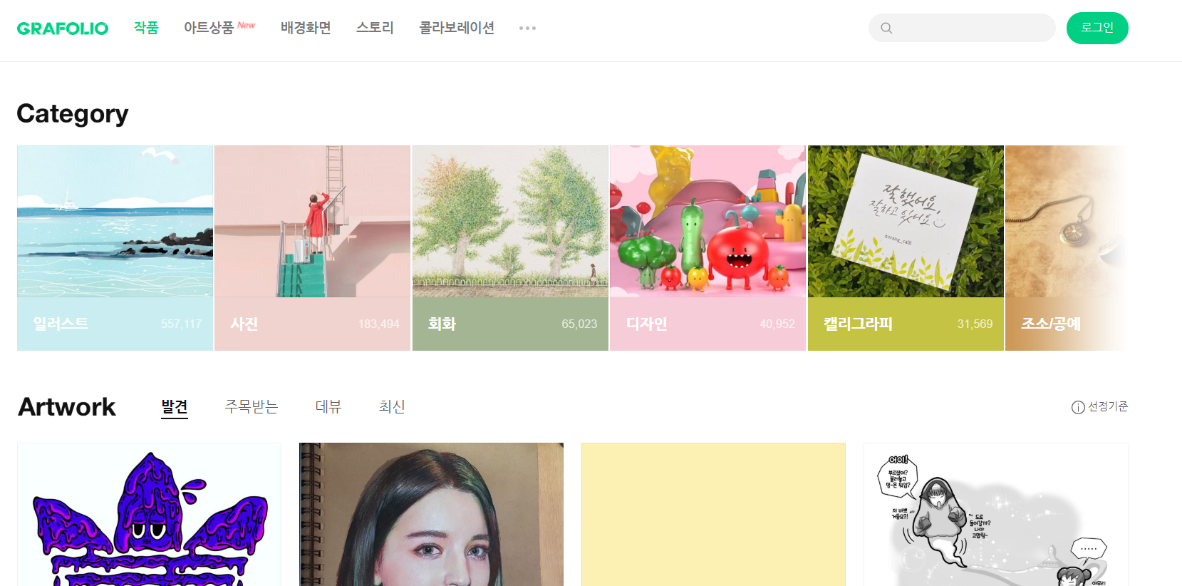 네이버에서 서비스중인 그라폴리오는 일러스트, 회화에 특화되어 있다. 공모전도 진행되고 있으며, 그냥 보고만 있어도 힐링이 되는 작가님들의 작품들이 많아 자주 구경하곤 한다